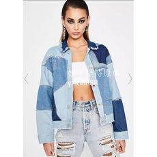 美国dolls kill个性街头时髦设计撞色宽松单排扣长袖牛仔外套fn春