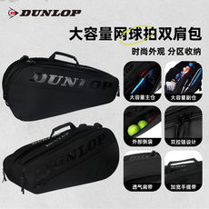代购Dunlop邓禄普网球包双拍收纳分层储物侧袋置物底部鞋仓黑色