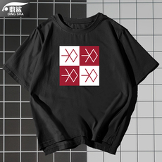 EXO二巡演唱会印花男女同款打歌服青少年学生纯棉半截袖休闲-T恤