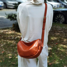 进口植鞣重油脂牛皮月亮包真皮女包单肩斜挎包法拉利皮包饺子包