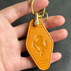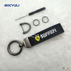 适用于法拉利汽车翻毛皮钥匙扣个性车标商务情侣钥匙链环挂件跨境