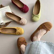 GEGELV豆豆鞋女春秋方头浅口蝴蝶结平底鞋芭蕾舞复古单鞋