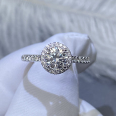 MaBelle/玛贝尔18K白金单颗粒圆形群镶款结婚求婚钻石戒指GIA证书