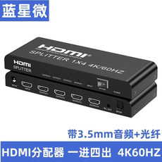 HDMI2.0分配器一分四带音频光纤分离转换器4K60hz超清视频分屏器