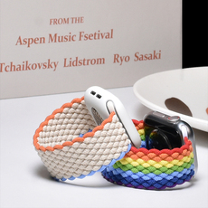 适用于applewatchS11/9/8编织单圈表带iwatchs10/7/6/5代波浪竖纹弹力表带苹果手表SE尼龙编织表带彩虹色夏日