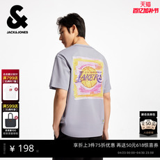 杰克琼斯NBA联名款男装春季新款纯棉印花字母篮球日常休闲短袖T恤