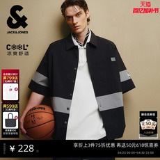 杰克琼斯男装春季时尚潮流舒适宽松版型尖领撞色拼接短袖衬衫外套