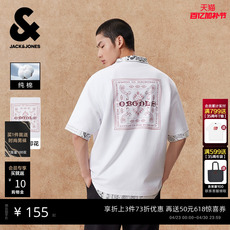 杰克琼斯男装春夏新款撞色印花短袖T恤刺绣纯棉打底衫情侣装宽松
