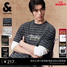【蜡染】杰克琼斯男装夏季新款纯棉条纹短袖T恤宽松字母印花打底