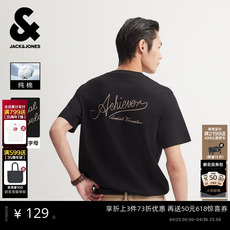 杰克琼斯男装春季新款T恤舒适纯棉潮流百搭衣身水洗圆领短袖上衣