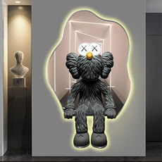 Kaws玄关装饰画潮牌暴力熊壁画带钟表led灯画高级感X走廊过道挂画