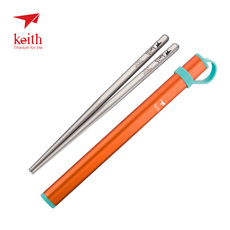 KEITH铠斯纯钛筷子便携轻质钛餐具防滑耐用空心圆筷子露营钛用品
