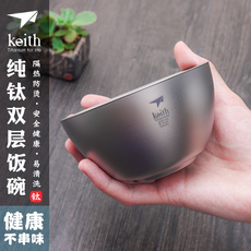 keith铠斯纯钛双层饭碗隔热防烫钛碗居家户外钛碗便携钛餐具健康