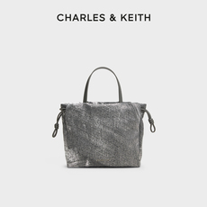 CHARLES&KEITH秋季女包CK2-30782575大容量褶皱油蜡镜面镭射托特