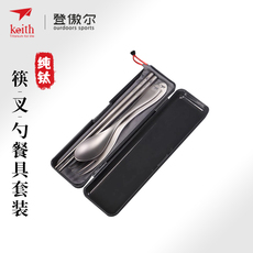 Keith铠斯钛筷子餐勺随身餐具套装纯钛勺子餐叉便携户外野营筷勺