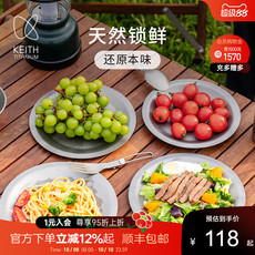 【新品】KEITH铠斯纯钛碟圆盘菜盘蒸盘平底浅盘饭盘户外野餐烧烤
