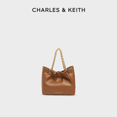 CHARLES&KEITH秋季女包CK2-20782466褶皱链条托特包手提包日晒棕