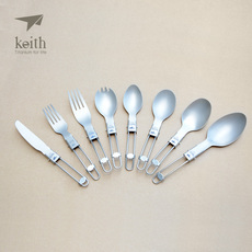KEITH铠斯餐勺叉勺饭勺便携户外餐具野餐野营折叠勺子纯钛勺
