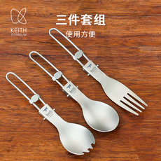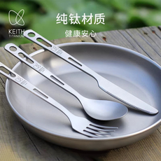 keith铠斯刀叉勺三件套饭叉纯钛勺子饭勺餐勺钛叉勺便携户外餐具