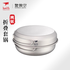 keith铠斯钛锅饭盒盖碗全钛煎锅二碗一盖便携户外折叠柄套锅饭碗