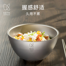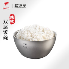 keith铠斯纯钛双层饭碗隔热防烫便携钛碗露营户外便携钛餐具家用