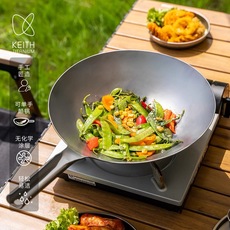 KEITH铠斯纯钛平底锅无涂层户外露营牛排煎锅煎蛋燃气灶专用钛锅