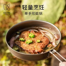 KEITH铠斯钛平底锅无涂层轻量便携户外露营煎炒锅手柄可折叠钛锅