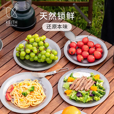 keith铠斯钛碗碟双层碗钛碟餐盘套装家用户外便携钛餐具野餐用品