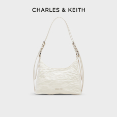 CHARLES&KEITH秋季女包CK2-40271360褶皱油蜡皮单肩包腋下包女
