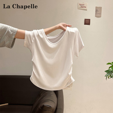 拉夏贝尔/La Chapelle字母刺绣短袖针织衫女夏季新款圆领T恤上衣