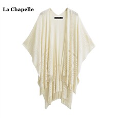 拉夏贝尔/La Chapelle旅游穿搭纯色镂空斗篷披风外搭流苏披肩