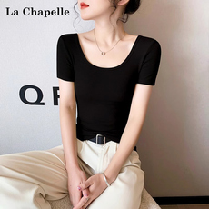 拉夏贝尔黑色U领正肩短袖T恤女夏季2026新款冰丝薄款修身低领上衣