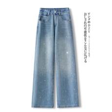 拉夏贝尔重工烫钻牛仔裤女2026年流行爆款带钻小个子休闲阔腿裤子