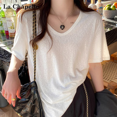 拉夏贝尔/La Chapelle肌理感亮片短袖T恤女夏季新款休闲宽松上衣