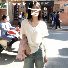 拉夏贝尔美式正肩短袖T恤女春夏新款基础款百搭修身内搭打底上衣
