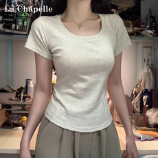 拉夏贝尔/La Chapelle纯色方领短袖T恤女夏季新款设计感扭结上衣