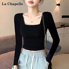 拉夏贝尔黑色纯棉打底衫女内搭2024新款秋冬短款正肩保暖长袖上衣