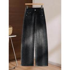 拉夏贝尔烫钻牛仔裤女春季2026新款爆款高腰显瘦满天星美式直筒裤