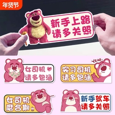 草莓熊实习贴磁吸标志新手上路汽车贴纸女司机提示贴搞笑创意磁性