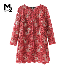 M2奥莱店春夏复古网纱长袖开衫女装圆领花边雪纺上衣