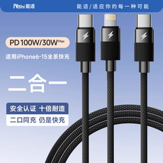 能适Type-C数据线二合一双头适用iPhone15pd100w充电线超级一拖二快充适用苹果小米华为平板MacBookPro电脑