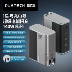 CUKTECH酷态科15号GaN氮化镓140W快充PD3.1多口Type-c适配器适用大疆联想华为苹果Macbook Pro笔记本充电器头