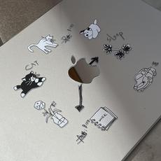汪三岁「猫狗时钟」可爱ins风插画苹果macbook保护壳air13套笔记本2024pro16寸M4电脑pro15寸透明
