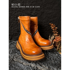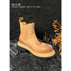MO小邪' A022原创设计水洗马皮短靴切尔西秋冬厚底百搭真皮靴子女