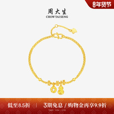 周大生黄金手链女足金几何小方糖O字链叠戴手饰生日礼物送女朋友