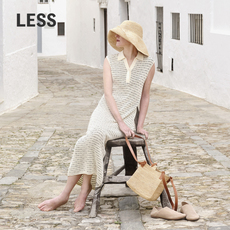 LESS夏季修身针织无袖连衣裙长绒棉直筒开衩长款背心裙2O4G11890