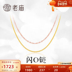 老庙黄金18K金素链轻盈闪O链基础百搭简约项链彩金自戴送礼物