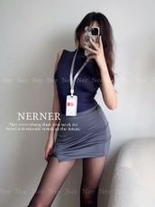 喵:小秘在线!纯欲风性感修身背心气质御姐秘书装OL包臀短裙套装