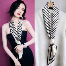 OL法式条纹小丝巾长条方巾女百搭春秋季细窄装饰衬衫飘带绑包绑发