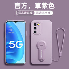 适用oppoA55手机壳新款液态硅胶oppoA53s支架保护套a55s高级感oppo男女全包镜头防摔a56简约纯色手绳软外壳